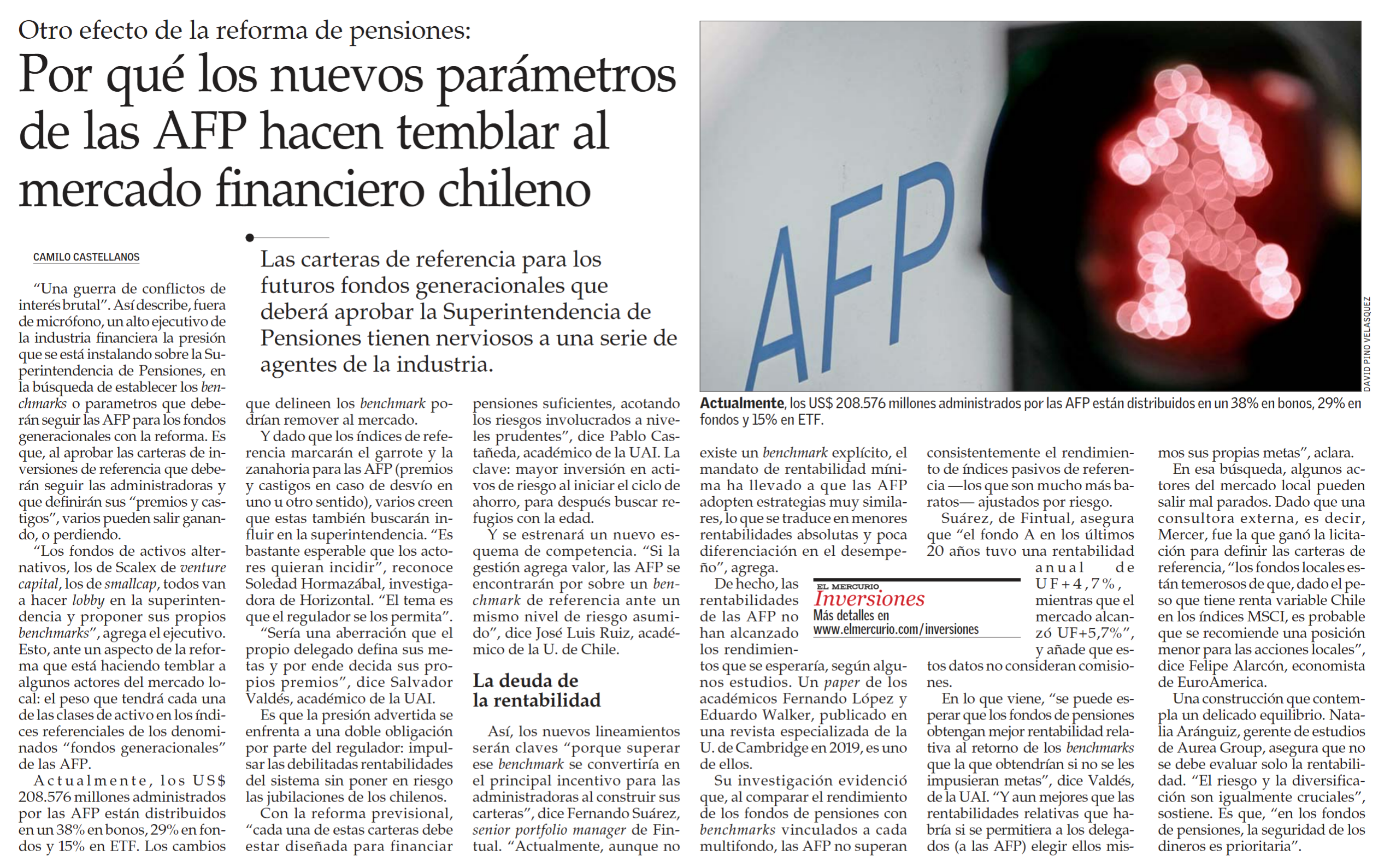 Director del Centro de Gobierno Corporativo UC (CGCUC). Director en LarrainVial Asset Management y presidente de su Comité de Auditoría. Previamente fue miembro del Consejo Asesor Financiero del Ministerio de Hacienda para los Fondos FEES y FRP y también del Consejo Técnico de Inversiones (CTI). Ha sido consultor de empresas, gobiernos, organizaciones internacionales y testigo experto.