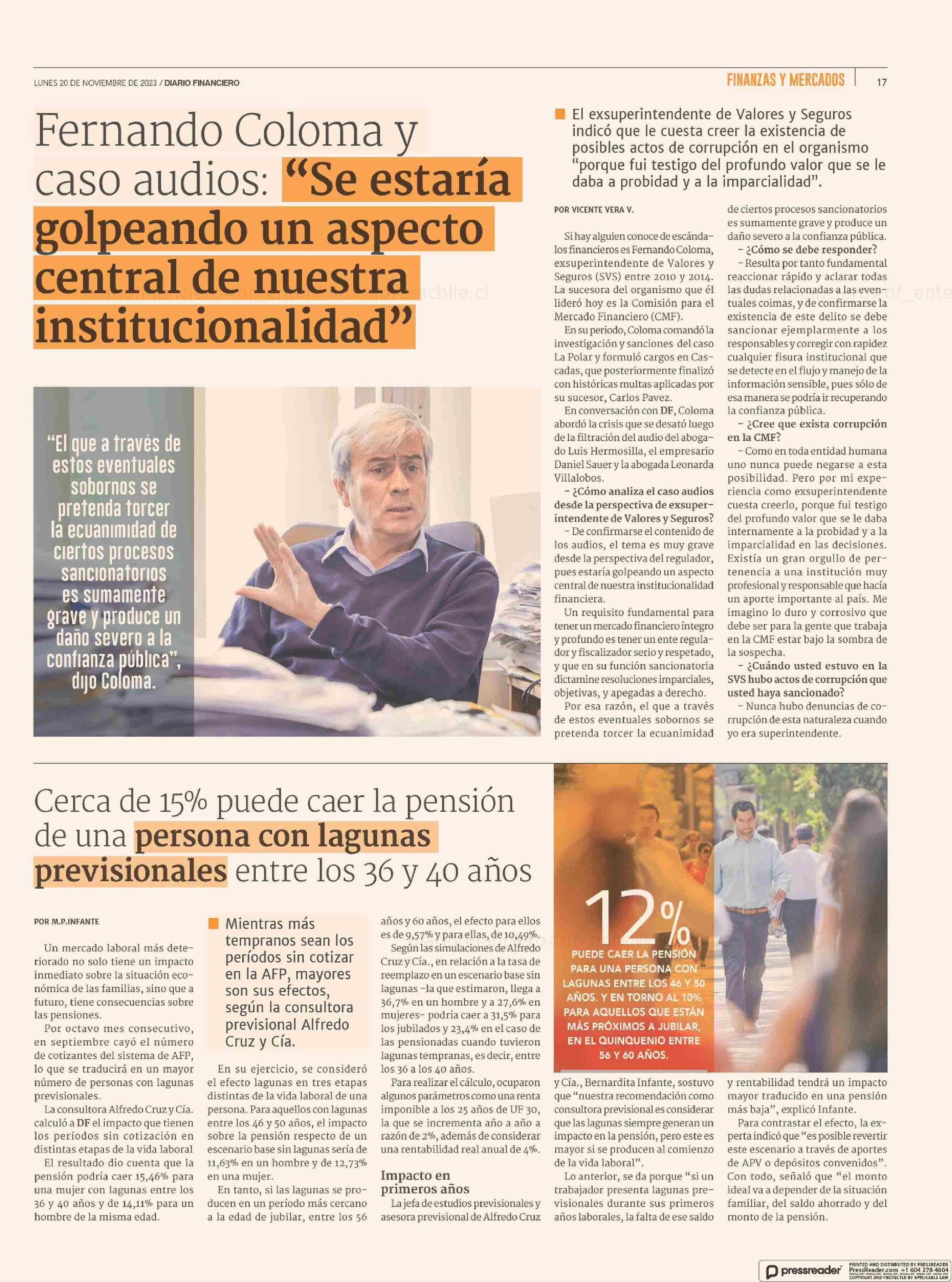 El Mercurio 14/11/2023 El remezón en el mercado por audios que apuntan a posible corrupción al interior de la CMF