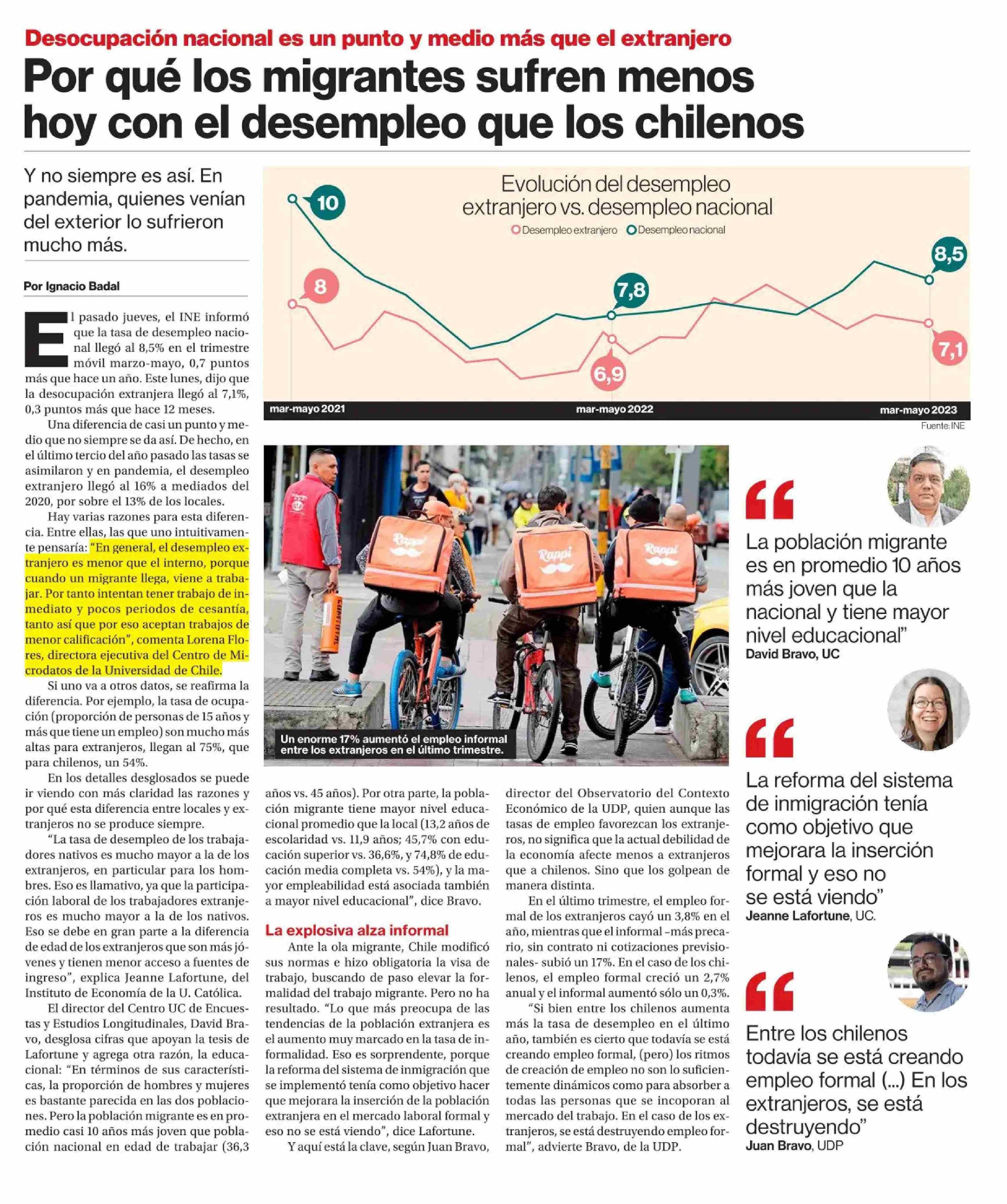 La Tercera 01/03/2023 Desempleo de la población extranjera anota leve alza durante el último trimestre móvil