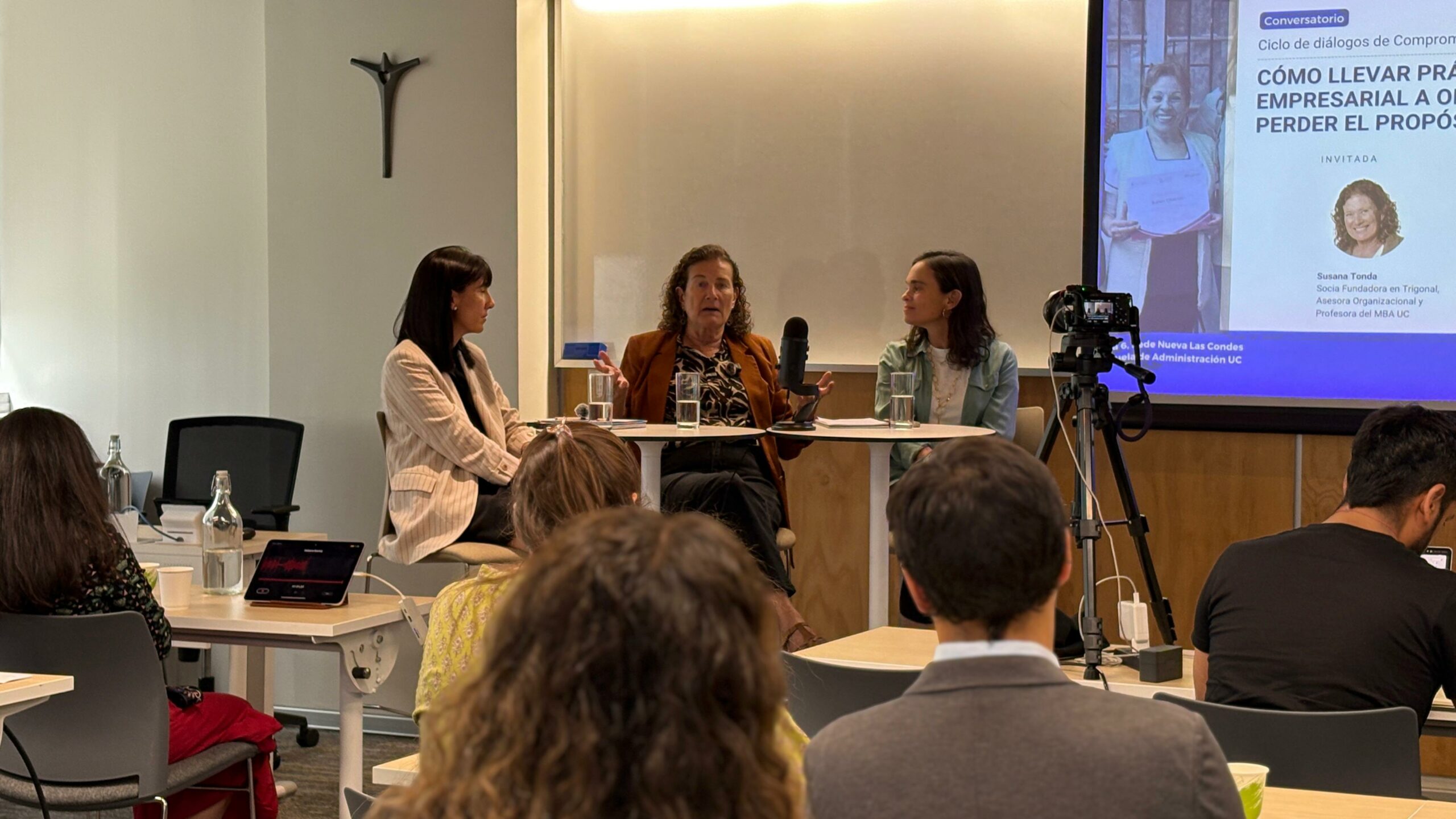 Esta conversación con Susana fue guiada por la directora de Ingeniería Comercial UC, Victoria Valdés y por la directora Ejecutiva de Corporación Simón de Cirene, Alejandra Iacobelli, quienes agradecieron a la gran audiencia presente y los motivaron a continuar participando de los próximos encuentros del ciclo que se retomarán en marzo de 2026.