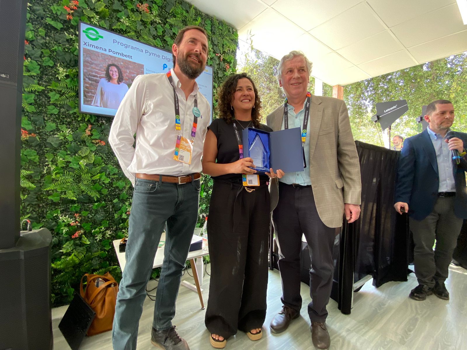 En el stand de Valor Pyme se vivió una instancia de cierre del año 2025 donde se destacó a emprendedores apoyados por distintos socios. En este espacio, el decano Sánchez junto al gerente General de la OTIC, José Garay, entregó un reconocimiento a Ximena Pombett, directora Ejecutiva de Prolearning. Ella destacó: “El programa me ha abierto muchos espacios. Mucho se habla de la soledad en los cargos de liderazgo, que es mucho más crítico en las pequeñas y medianas empresas. Se valoran mucho estas instancias en las que se puede aprender y reflexionar. Este ecosistema que se ha creado nos permite interactuar con personas y especialistas que nos enseñan un montón”.