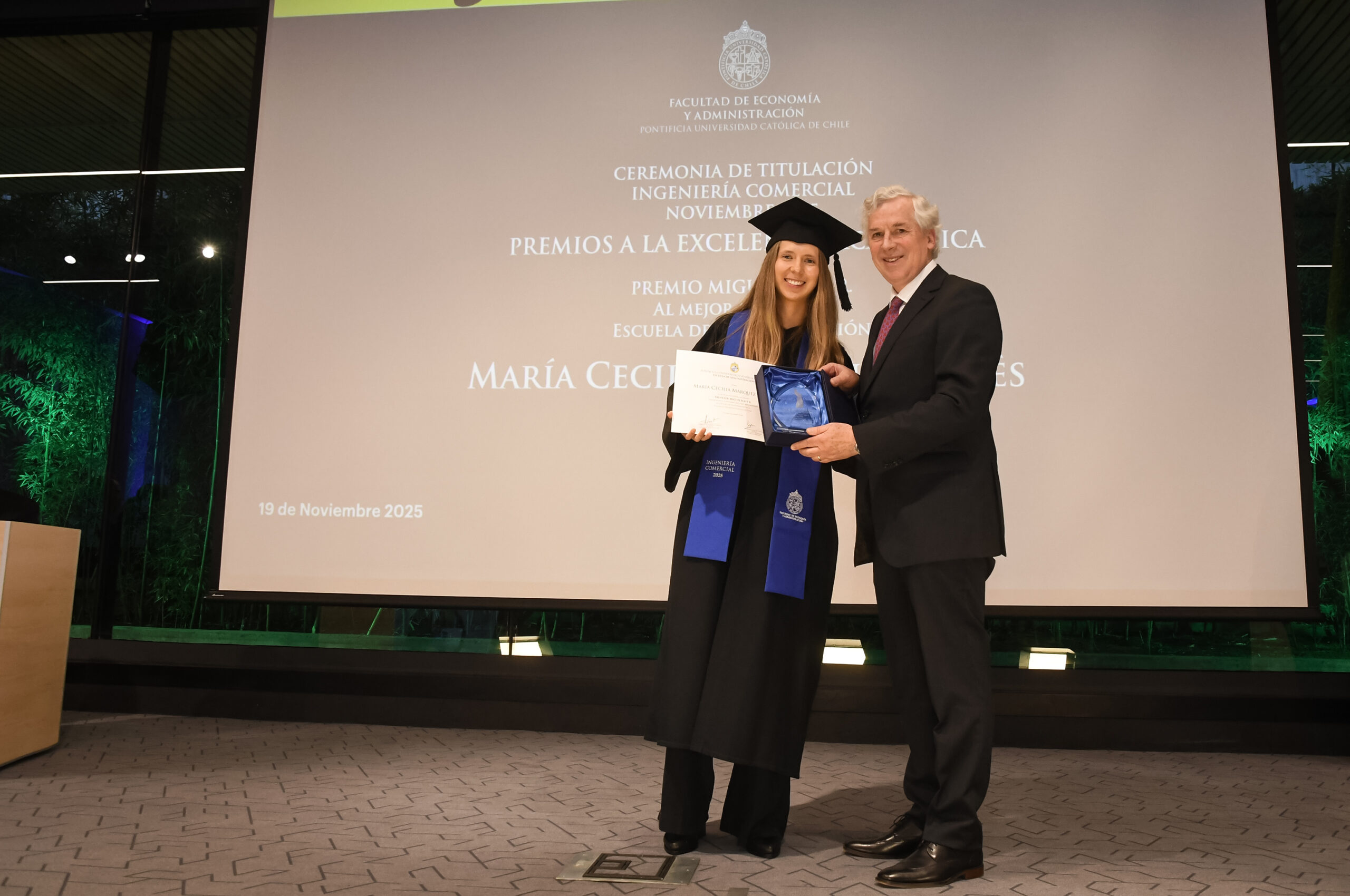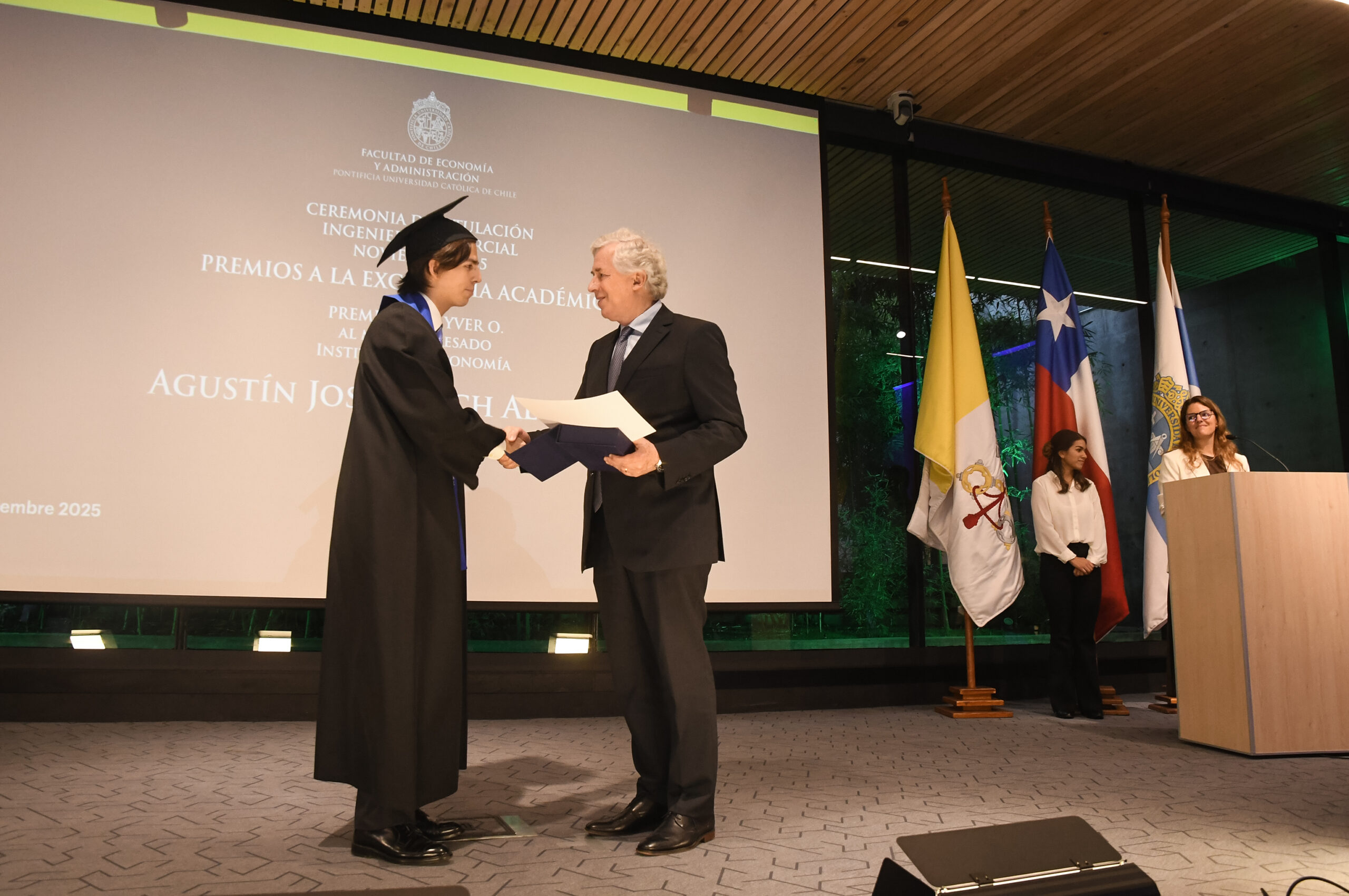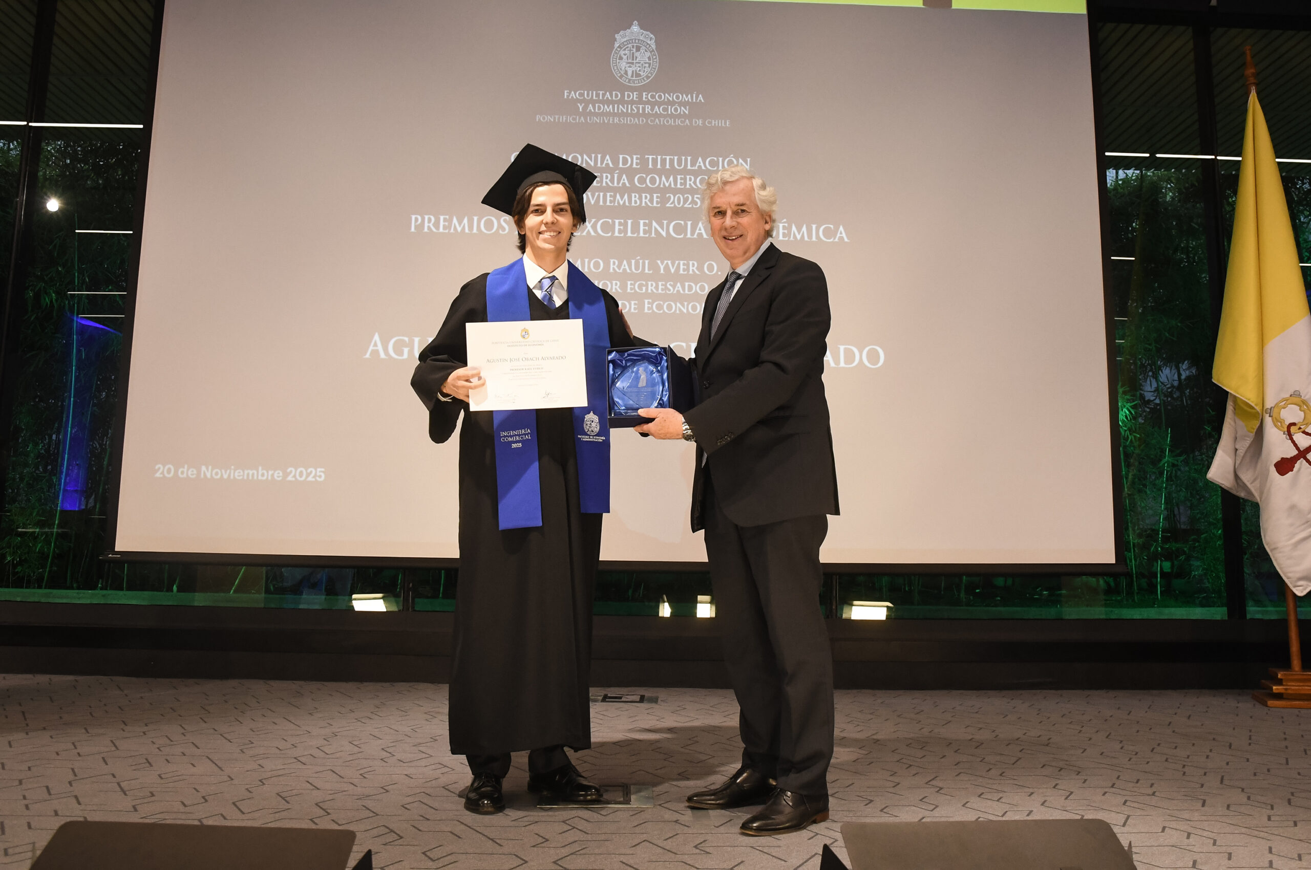 El Premio profesor Raúl Yver al mejor egresado o egresada del Instituto de Economía fue para el alumno Agustín Obach. Mientras que el Premio profesor Miguel Kast R., al mejor egresado o egresada de la Escuela de Administración fue para María Cecilia Márquez.