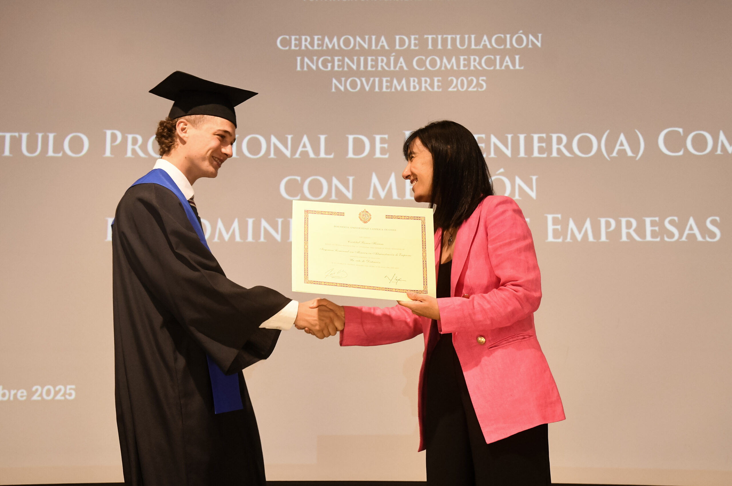 Dentro de la vida académica de los estudiantes de pregrado de la Pontificia Universidad Católica de Chile hay dos ceremonias académicas que marcan de manera significativa sus trayectorias: la bienvenida que les da la Facultad el día de su ingreso y la solmene Ceremonia de Titulación, que marca el fin del proceso formativo. Ésta última es la que se llevó a cabo para la generación 2020 de Ingeniería Comercial UC.
