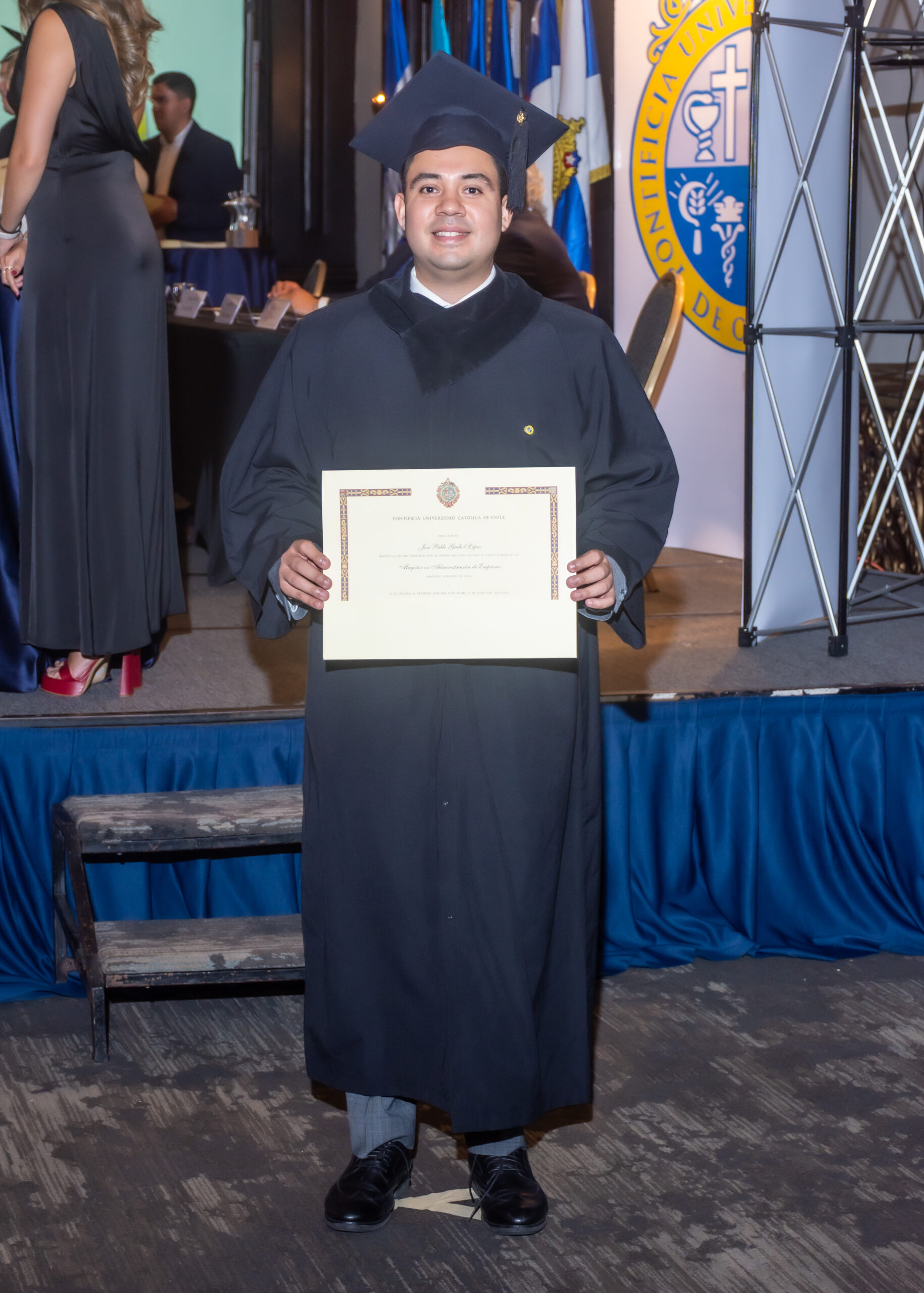 Además, y de forma virtual, el Decano de la Facultad de Economía y Administración UC, José Miguel Sánchez, dirigió unas palabras a los graduados: “Los felicito por haber conseguido este logro que no es fácil. Muchas veces debieron postergar la familia, proyectos personales y trabajando duro. Hoy esos esfuerzos se ven retribuidos”, además agregó, “hoy ustedes representan, de cara al mundo, lo que la Pontificia Universidad Católica de Chile en su identidad es: una institución que forma gente preocupada del bien común y que pone al centro de su quehacer profesional a la persona humana”.