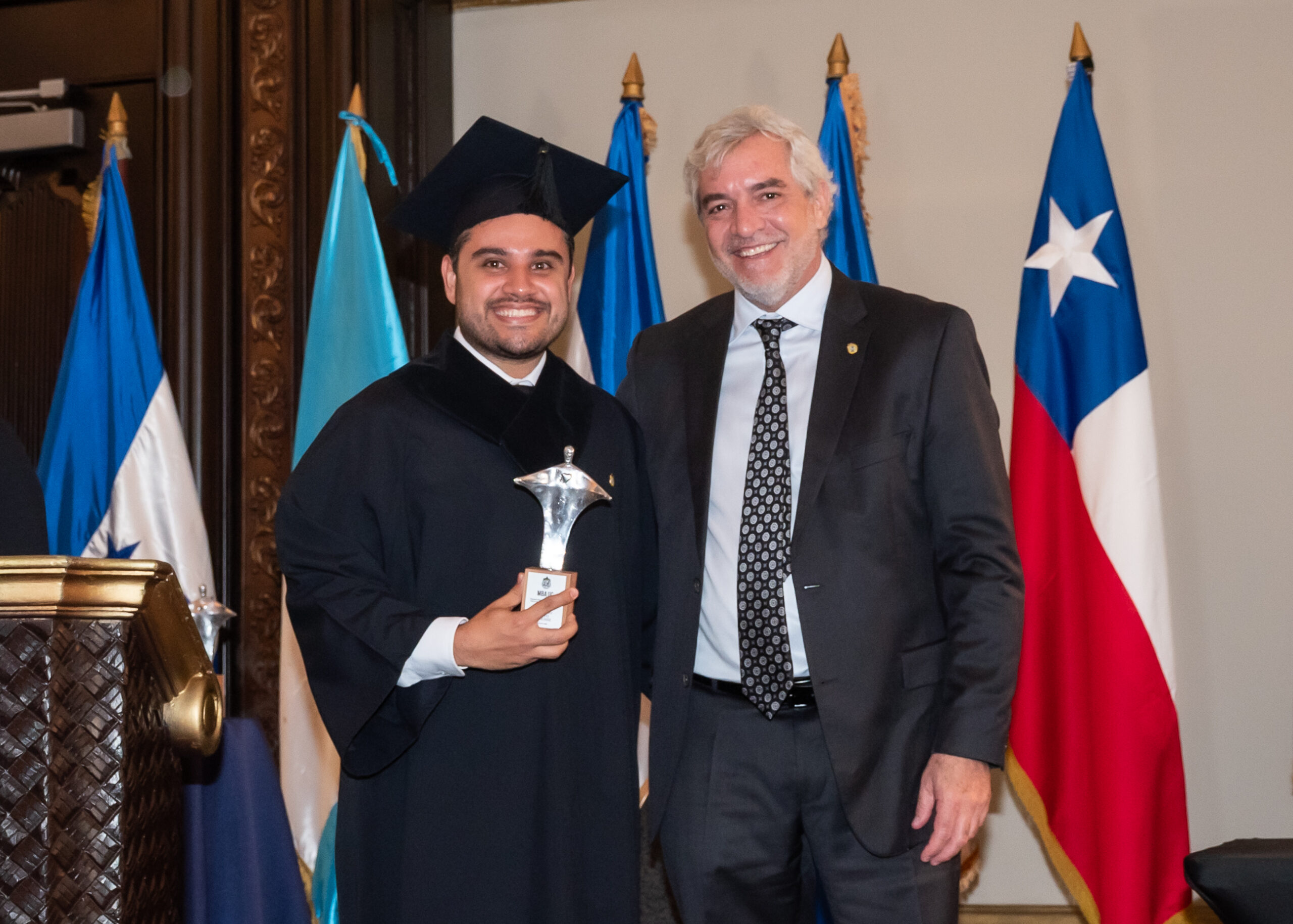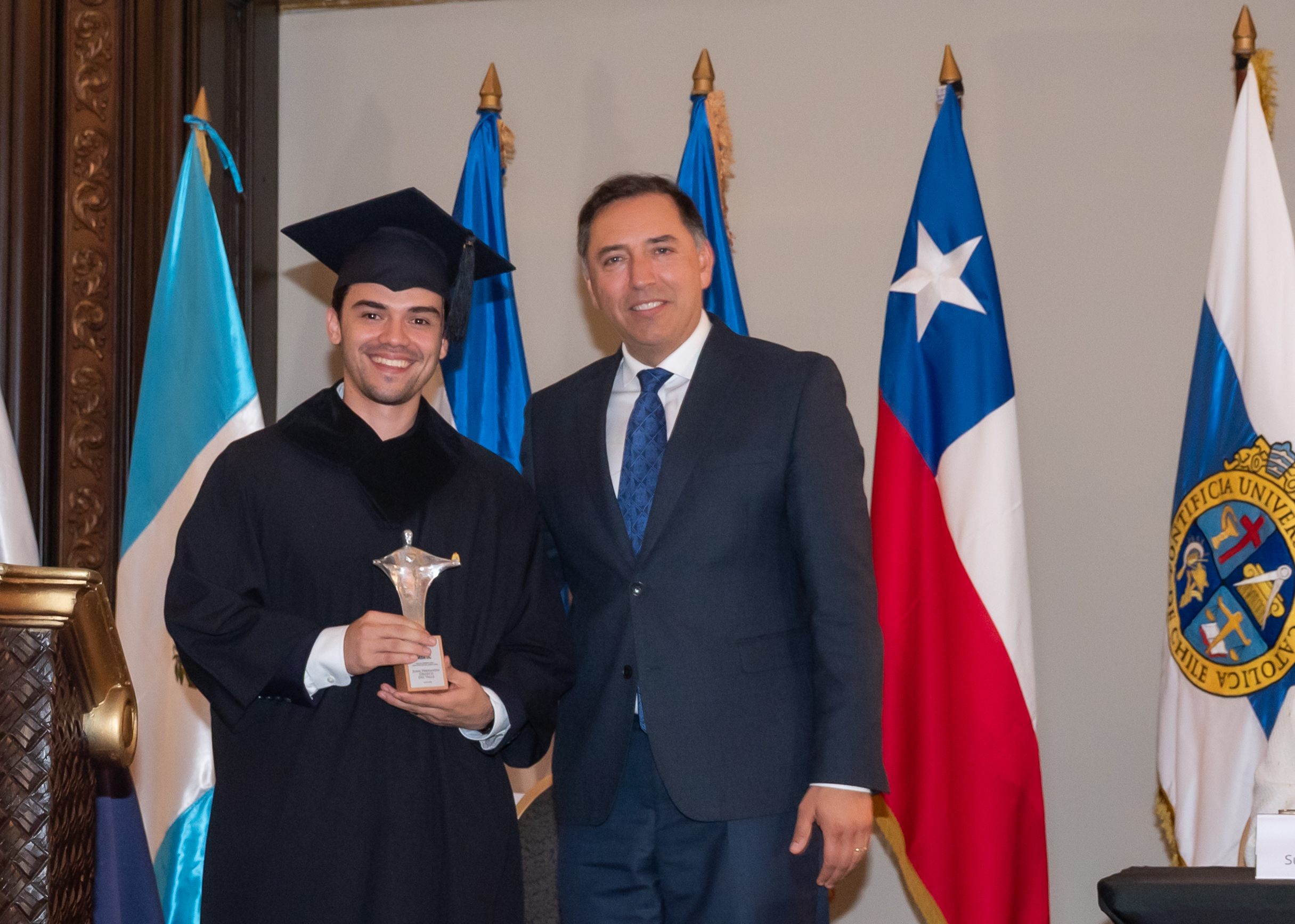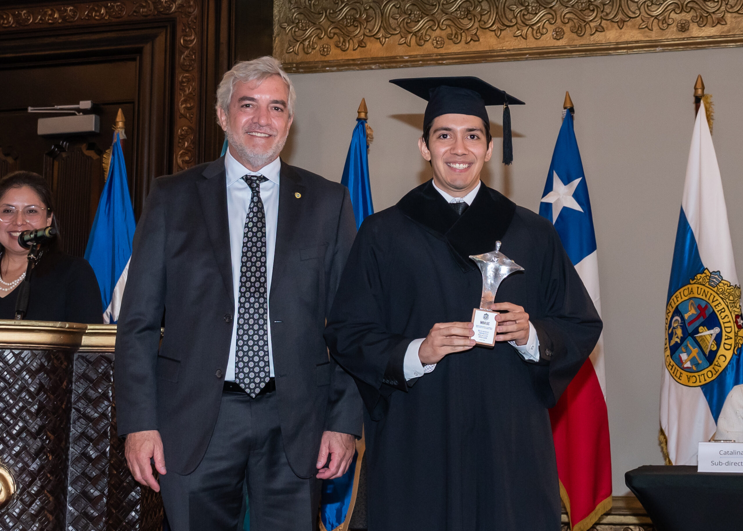 En la ceremonia, entregó el Premio a la Excelencia Académica MBA UC el director de Academics, Andrés Sicilia, en esta ocasión, a dos estudiantes: William Cotto y Rolando Palacios.