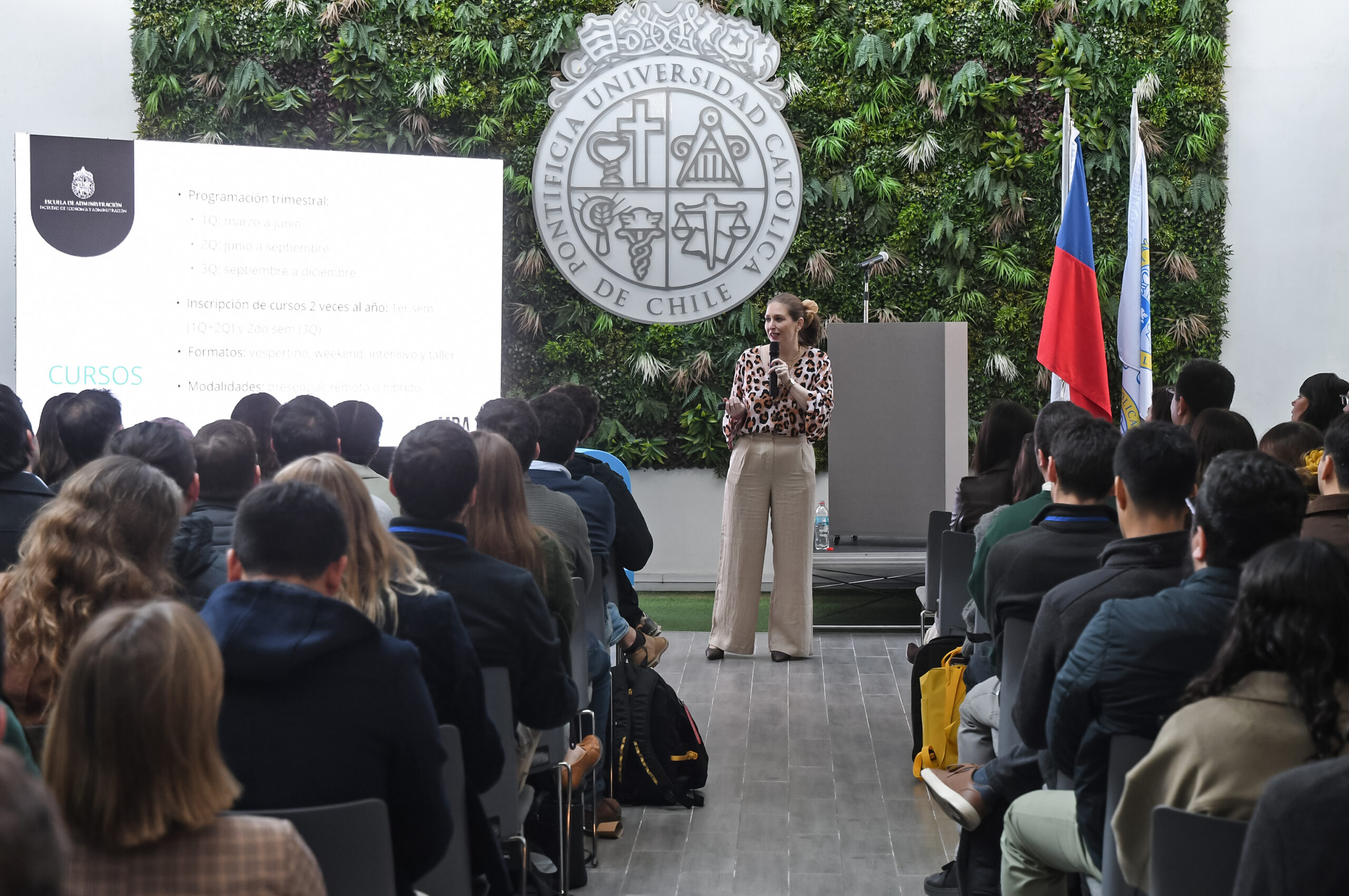 En este primer día de actividades, los nuevos alumnos recibieron una charla de la directora de PedidosYa Market y exalumna de MBA UC, Andrea Halabi, quien relató el impacto que le programa tuvo en su vida y en su carrera: “Viví esta experiencia como un verdadero regalo y, desde esa perspectiva, decidí disfrutar el proceso, a mi tiempo. Descubrí grupos de estudios con personas de distintas carreras y pude nutrirme de sus visiones profesionales y sus experiencias diversas. Esto transformó mi vida profesional”.