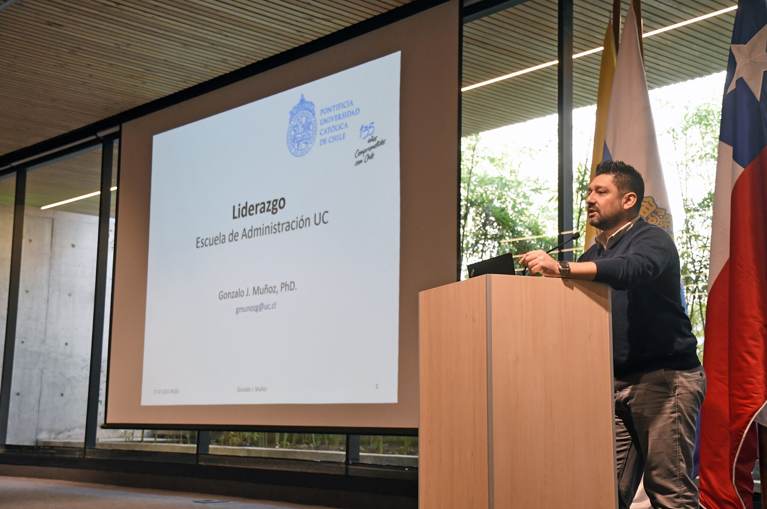 En el auditorio Francisco Rosende BCI inició la jornada de la Escuela de Líderes Escolares 2024. Esta es la segunda vez que se realiza esta actividad en la Facultad de Economía y Administración UC. La instancia estuvo marcada por charlas temáticas y experiencias grupales para los líderes jóvenes que se hicieron postularon a este espacio.