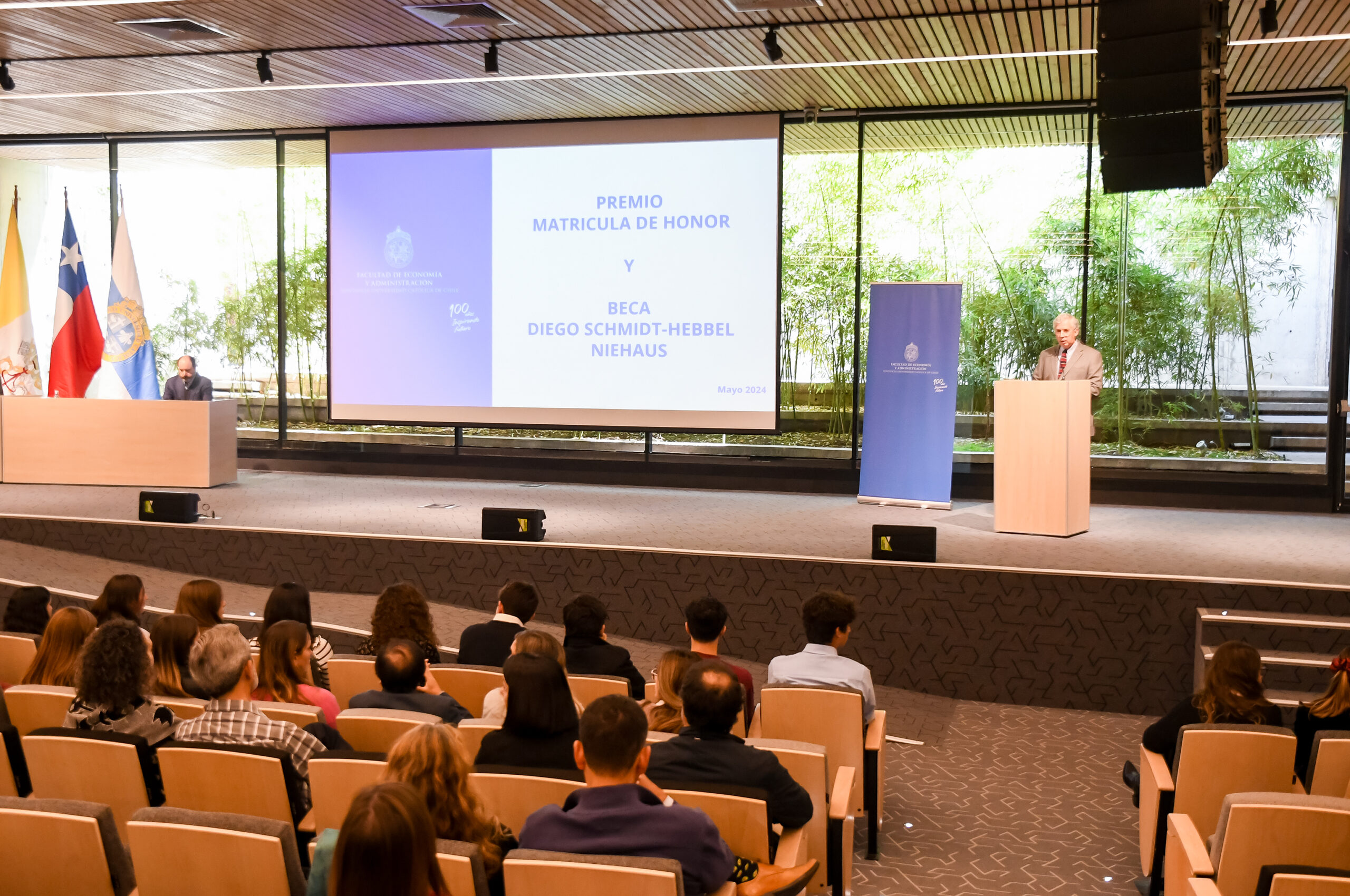 Dos premios, una ceremonia. El auditorio Francisco Rosende Bci fue el escenario de este reconocimiento al esfuerzo académico y a los ayudantes más destacados, en una actividad rodeada de la comunidad de la Facultad de Economía y Administración y por las familias de los galardonados.