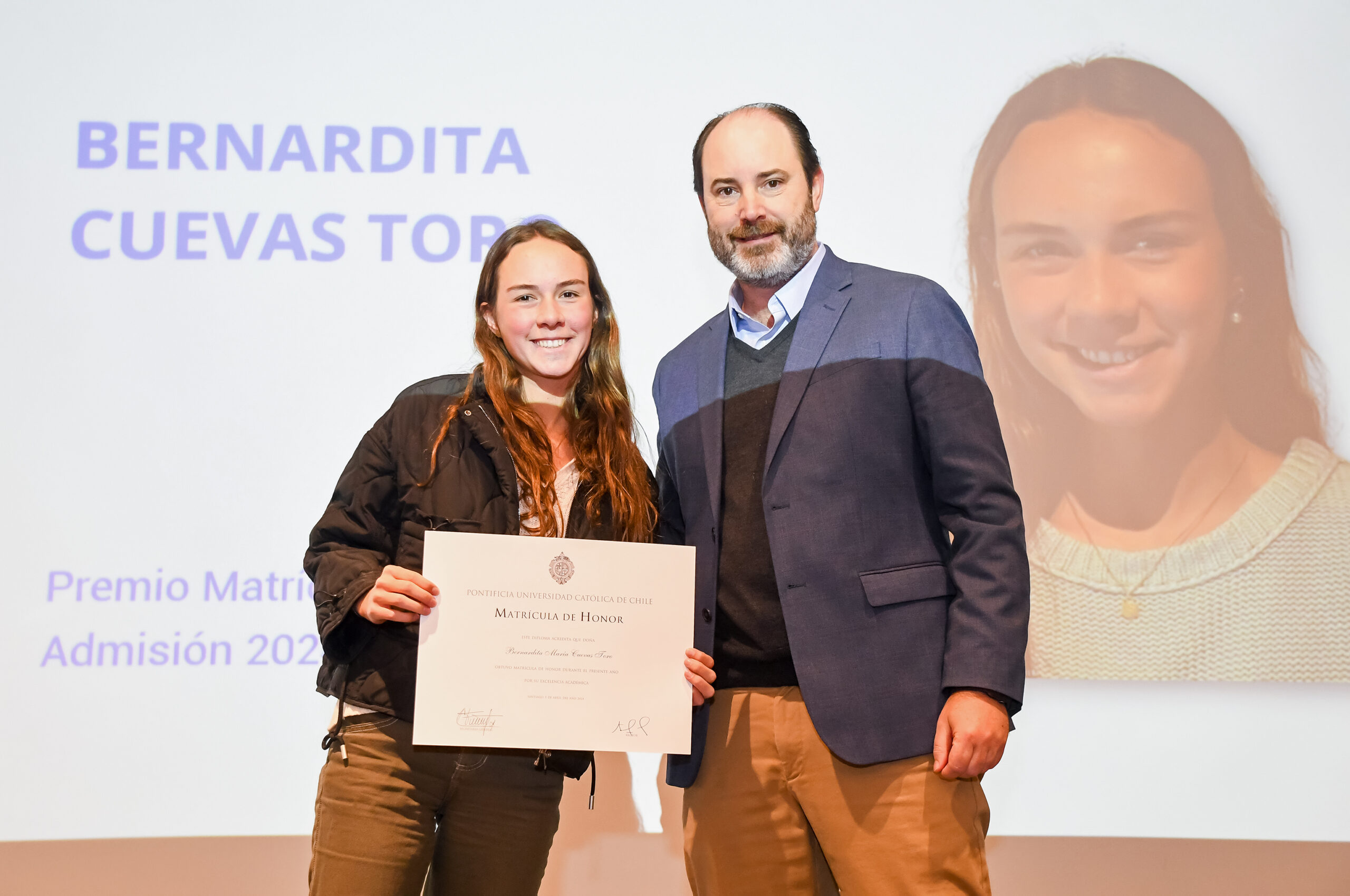 Las Matrículas de Honor son un reconocimiento entregado a los novatos con altos puntajes de ingreso PAES y a los estudiantes regulares con el mejor promedio de su generación. En esta ocasión fueron destacados a 26 alumnos de primer año y los estudiantes María Magdalena Jottar de segundo año, Valentina Vergara, de tercer año, Francisco Ruiz-Tagle, de cuarto año y Catalina Arriagada de quinto año.